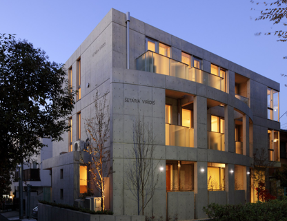 渋谷区西原の旧玉川上水沿いに建つ小さな鉄筋コンクリート低層デザイナーズマンションSETARIA VIRIDIS Nishihara Shibuya